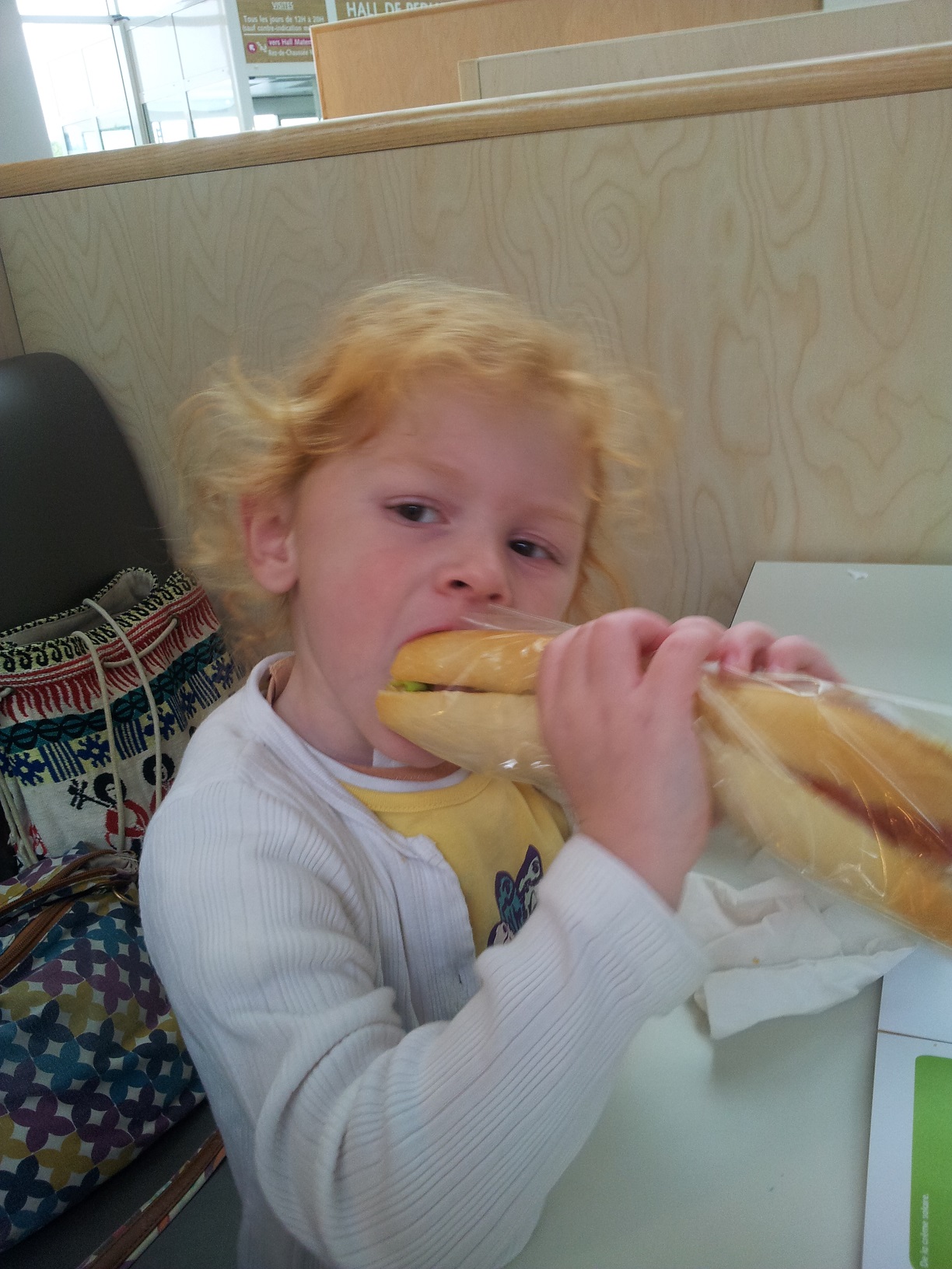 et la photo avec cette petite miss toute fine et féminine et ce gros sandwich est craquante malgré les circonstances......